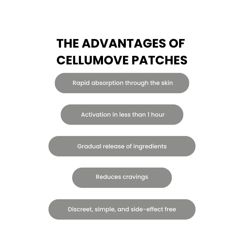 Cellumove-plasteret er ikke bare et simpelt fedtforbrændende plaster. Det er direkte rettet mod de neurohormonale signaler, der er forbundet med appetitten. Ingen koffein, ingen "mirakelkur" - bare en stabil, naturlig tilgang baseret på den nyeste GLP-1-forskning.